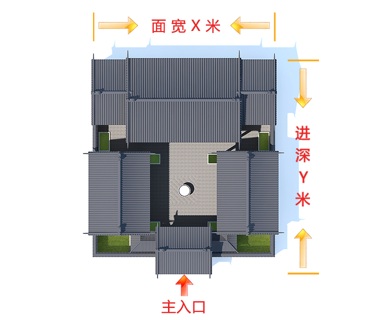 編號001生態園農家樂四合院圖紙面寬36米,進深55米三進四合院全套施工圖紙 自建房圖紙 提供材料及技術支持